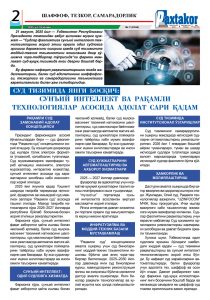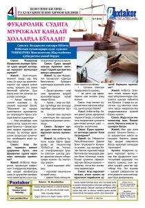 «PAXTAKOR» GAZETASINING 2025 YIL 7-SONIDA: 10.10.2025 15 Улашинг: Рукн: Жамият Ўхшаш хабарлар Жамият саҳифасидаги мақолалар »БЕКОР ДЕБ ҲИСОБЛАНСИНБЕКОР ДЕБ ҲИСОБЛАНСИН«PAXTAKOR» GAZETASINING 2025 YIL 6-SONIDA«PAXTAKOR» GAZETASINING 2025 YIL 6-SONIDAФаровон ҳаёт сари қадамФаровон ҳаёт сари қадамЎЗБЕКИСТОН ЁШЛАРИ – БИРЛАШАЙЛИКЎЗБЕКИСТОН ЁШЛАРИ – БИРЛАШАЙЛИК